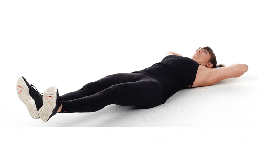 Frog Kicks: To do Frog Kicks, lie on your back with your hands behind your head and your legs out straight on the ground in front of you. Bring your heels together while turning your toes out. You can then slightly crunch your upper body up to help press your lower back into the ground or you can fully relax your head down. Lift your legs up off the ground so your heels are about a foot off the ground. Keeping your heels together, bring your heels in toward your butt. Your knees will bend out wide as you’ll keep your hips externally rotated. Letting your knees fall open, bring your heels in, keeping your lower back against the ground. Then kick your legs back out straight and repeat. If you feel your lower back, kick out and up higher. If you feel your hip flexors really taking over, play around with how much you let your knees go out wide as you tuck in.